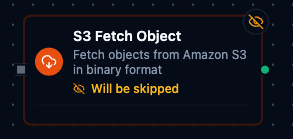 Use the S3 connection functions you configure here as nodes inside the Pipeline Designer to move files between systems. Drag in the fetch or write node, bind parameters to upstream outputs or constants, and tune retries or error branches.