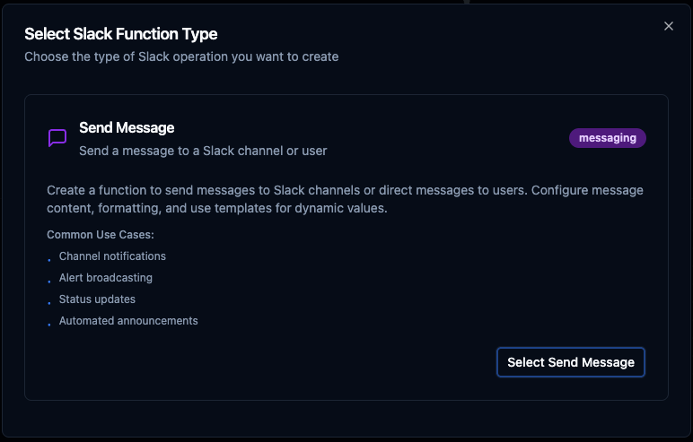 2. Select the function type (Send Message, Get Channels, Get Users)