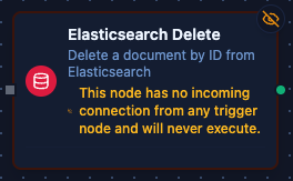 Elasticsearch is a distributed search and analytics engine built for scalability, full-text search, and real-time data analysis. MaestroHub provides four dedicated nodes for searching, indexing, retrieving, and deleting documents within your pipelines.