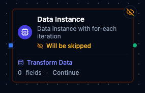 Unlike template-style nodes that use {{ }} expressions, Data Instance works with plain JavaScript code and an execution engine that: