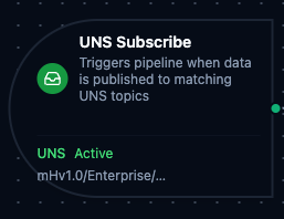 3. Data Payload Passthrough Incoming UNS data (topic, payload, and timestamp) is passed directly to the pipeline, making it available to all downstream nodes via the $trigger variable.