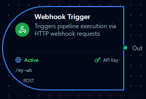 The Webhook Trigger Node starts a pipeline execution when an HTTP request is received at a unique webhook URL. It supports custom authentication headers, optional IP allowlists, CORS controls, and a raw-body mode for signature verification (e.g., Stripe). Use it to connect external systems and SaaS apps to MaestroHub pipelines.