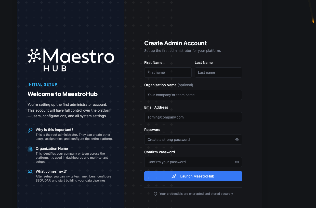MaestroHub runs as a single binary or Docker container. No external databases, no message brokers — everything is embedded.