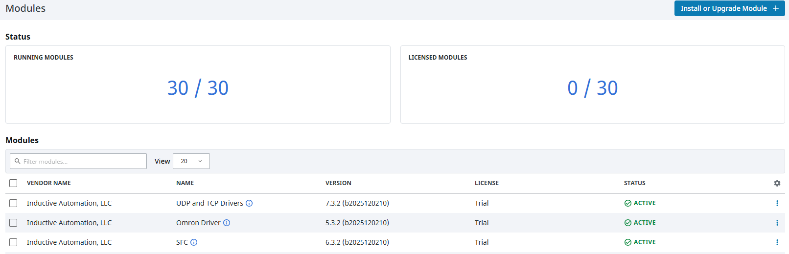 3. Verify on the Modules page that the MaestroHub Ignition Connector is Running.