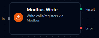 | Parameters | Connection, Function, Function Parameters optional Timeout Override, Debug Mode | Choose the shared Modbus connection profile (credentials, transport method, retry settings) and its saved function, then fill in the parameters specified within the function. Inputs accept literal values or Maestro expressions that are validated at save time and resolved during each execution. |