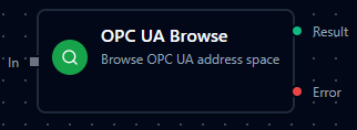 | Parameters | Connection, Function, Function Parameters, optional Security Overrides | Pick the OPC UA connection profile, node identifiers, and override security/session settings when needed. |