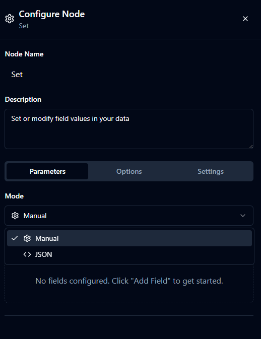 | Keep Only Set Fields | boolean | false | Remove any fields not explicitly configured (manual mode only). |
