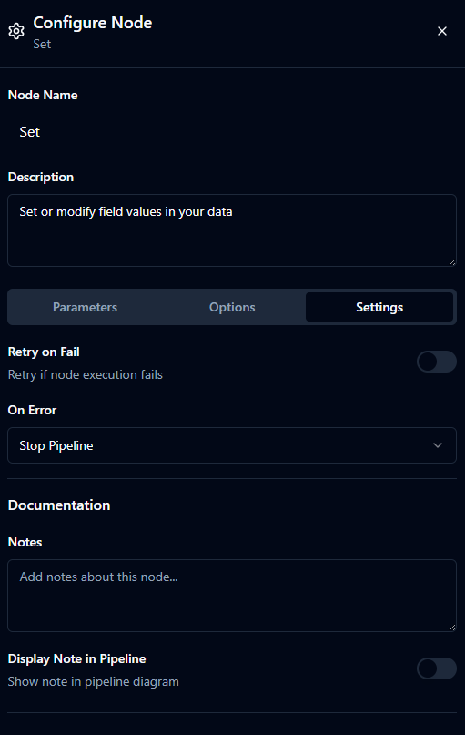 | Retry on Fail | boolean | false | Retries execution if the node encounters infrastructure issues. |
