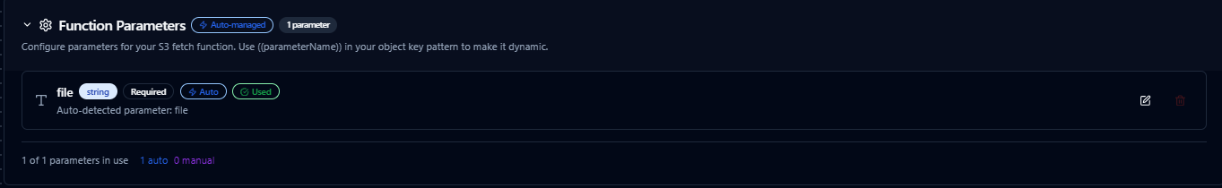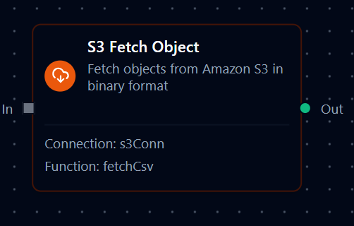 S3 fetch node with connection, function, and parameter bindings