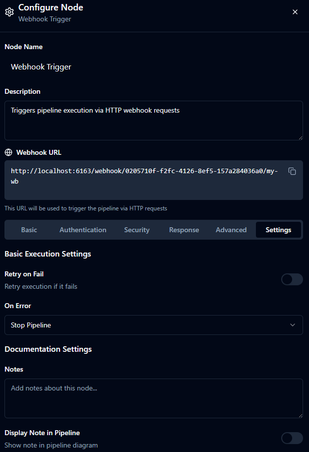 | Description | String (Optional) | Explains how/why this webhook starts the workflow. |